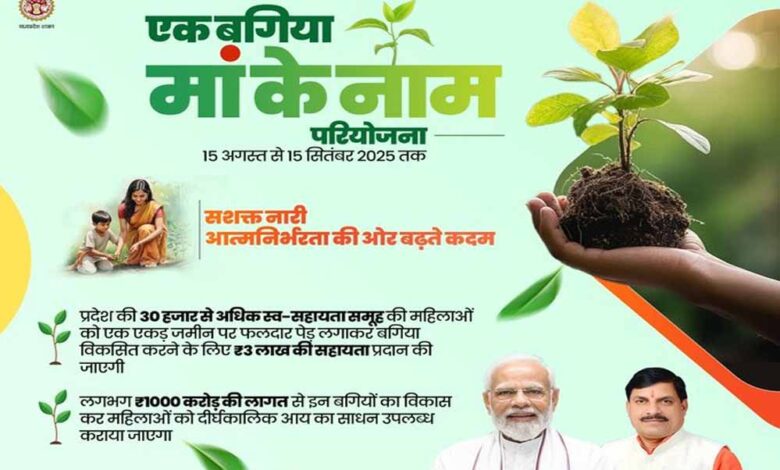 “एक बगिया माँ के नाम’’ परियोजना अंतर्गत प्रदेश की 31 हजार से अधिक स्वयं सहायता समूह की महिलाओं को लाभ मिलेगा। इनकी निजी जमीन पर 30 लाख से अधिक फलदार पौधे लगाएं जाएंगे, जो समूह की महिलाओं की आर्थिक समृद्धि का आधार बनेंगे।