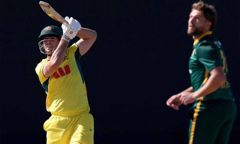 मेजबान ऑस्ट्रेलिया ने मैके के स्टेडियम में टॉस जीतकर बैटिंग चुनी। हेड और मार्श ने दमदार शुरुआत दिलाई। दोनों ने पहले विकेट के लिए 250 रनों की साझेदारी की। ऑस्ट्रेलिया को पहला झटका 35वें ओवर में हेड के रूप में लगा, जो स्पिनर केशव महाराज का शिकार बने। उन्होंने 103 गेंदों में 142 रन बनाने के बाद डेवाल्ड ब्रेविस को कैच थमाया। हेड के बल्ले से 17 चौके और पांच छक्के निकले। मार्श को सेनुरन मुथुसामी ने 37वें ओवर में रिकेल्टन के हाथों लपकवाया। उन्होंने 106 गेंदों में 100 रन जुटाए, जिसमें 6 चौके और 5 सिक्स शामिल हैं। मार्श ने इस दौरान तीन हजार वनडे रन कंप्लीट किए।