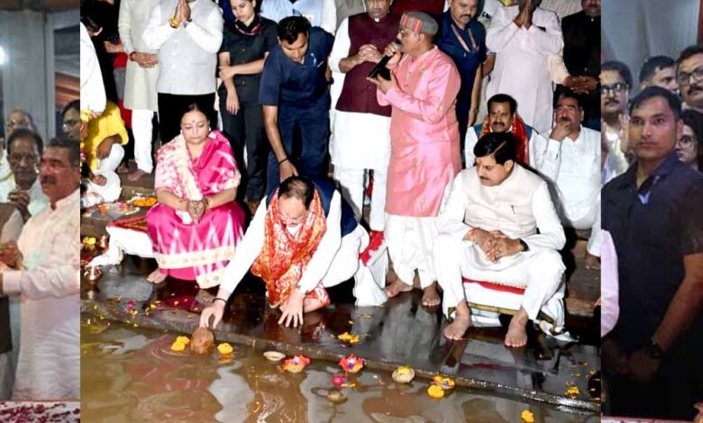 केंद्रीय मंत्री नड्डा और मुख्यमंत्री डॉ. यादव माँ नर्मदा की महाआरती में हुए शामिल