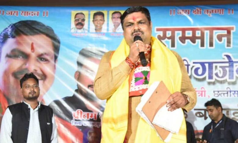 स्कूल शिक्षा, ग्रामोद्योग, विधि एवं विधायी मंत्री गजेन्द्र यादव ने आज रिसाली दशहरा मैदान, भिलाई में छत्तीसगढ़ झेरिया यादव समाज द्वारा आयोजित विशाल अभिनंदन समारोह में शामिल होकर समाज के विकास हेतु कई घोषणाएं कीं। उन्होंने चार सामुदायिक भवनों के निर्माण के लिए प्रत्येक को 20-20 लाख रुपये, कुल 80 लाख रुपये तथा 5 लाख रुपये की स्वेच्छानुदान राशि देने की घोषणा की। इसके अतिरिक्त उन्होंने दुर्ग स्थित पचरीपारा में आयोजित सम्मान समारोह में यादव महिला छात्रावास निर्माण हेतु 30 लाख रुपये देने की घोषणा की।