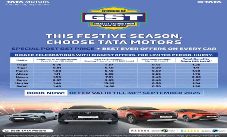 गुड्स एंड सर्विस टैक्स (GST) रिफॉर्म की चर्चा चारो ओर रही है. डेली लाइफ में इस्तेमाल होने वाली कई चीजों की कीमत में भारी कटौती देखने को मिल रही है. लेकिन इस वक्त सबसे ज़्यादा चर्चा जिस ऑफर की हो रही है, वह टाटा मोटर्स का ‘फेस्टिवल ऑफ GST’ कैंपेन. GST 2.0 लागू होने के बाद कंपनी ने जिस आक्रामक अंदाज़ में दाम घटाए हैं और ऊपर से त्योहारों का तड़का लगाया है, वह ग्राहकों के लिए ऐतिहासिक साबित हो सकता है.