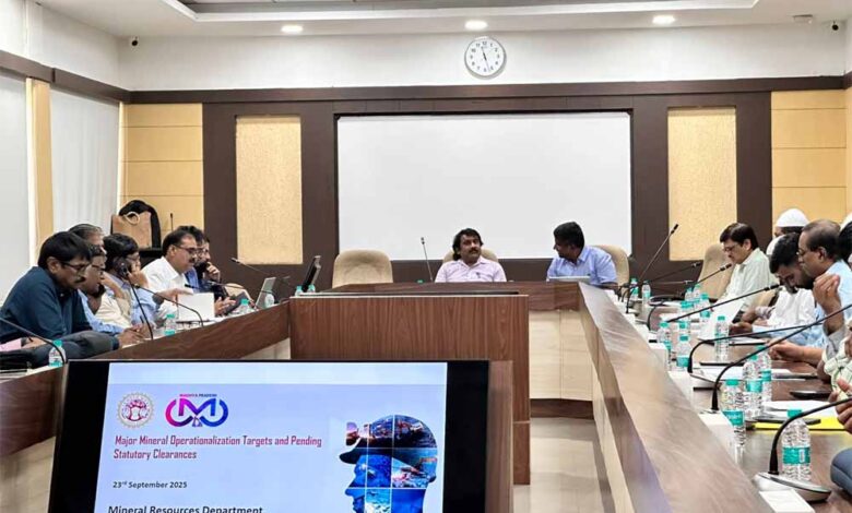 प्रमुख सचिव खनिज साधन श्री उमाकांत उमराव की अध्यक्षता में मंगलवार को आरसीव्हीपी नरोन्हा प्रशासन एवं प्रबंधकीय अकादमी, भोपाल में नीलाम किये गये मुख्य खनिज ब्लॉक, जिनमें चूना पत्थर, बॉक्साइट, आयरन, मैग्नीज, रॉक फॉस्फेट, कॉपर और अन्य कुल 103 खनिज ब्लॉकों में खनन संक्रियाएँ प्रारंभ किये जाने के संबंध में अधिमानी बोलीदारों के साथ समीक्षा बैठक हुई।