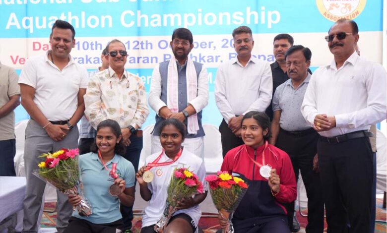 तीन दिवसीय राष्ट्रीय ट्रायथलॉन प्रतियोगिता का हुआ समापन, मंत्री पटेल ने खिलाड़ियों को पुरस्कार वितरण कर सम्मानित किया
