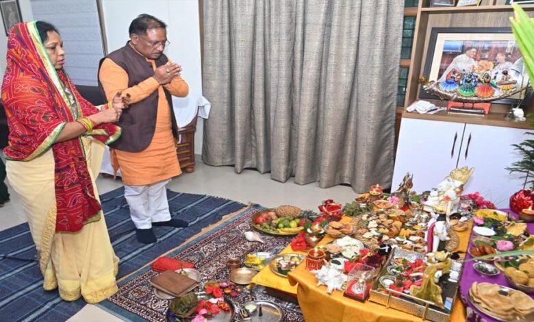रायपुर : मुख्यमंत्री विष्णु देव साय ने की गोवर्धन पूजा, प्रदेश की सुख-समृद्धि और खुशहाली की कामना की