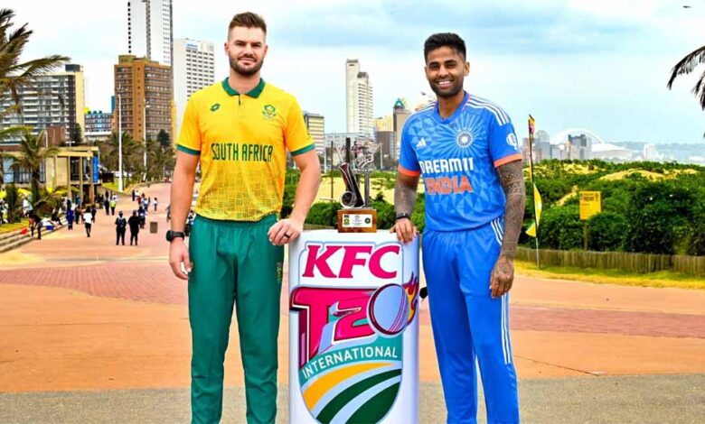 साउथ अफ्रीका संभावित XI- क्विंटन डी कॉक (विकेटकीपर), एडेन मार्कराम (कप्तान), ट्रिस्टन स्टब्स, डेवाल्ड ब्रेविस, डेविड मिलर, डोनोवन फरेरा, जॉर्ज लिंडे, मार्को जानसन, एनरिक नॉर्टजे/कॉर्बिन बॉश, ओटनील बार्टमैन, लुंगी एनगिडी