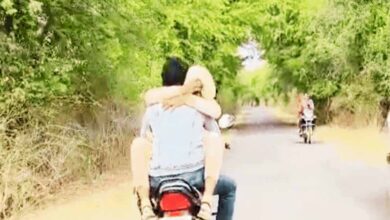 बाइक पर गर्लफ्रेंड-बॉयफ्रेंड का खतरनाक स्टंट, ट्रैफिक नियमों की उड़ी धज्जियां