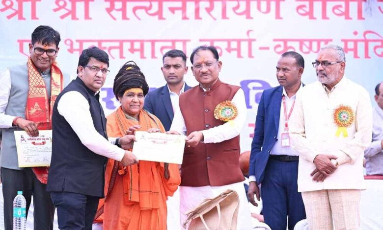 इससे पूर्व मुख्यमंत्री साय ने कोसमनारा स्थित श्री 108 सत्यनारायण बाबा जी एवं भक्त माता कर्मा-कृष्ण मंदिर में विधिवत पूजा-अर्चना कर प्रदेशवासियों की सुख-समृद्धि और खुशहाली की कामना की तथा महाशिवरात्रि की शुभकामनाएं दीं। कार्यक्रम को सम्बोधित करते हुए उन्होंने कहा कि 16 फरवरी 1998 से पूज्य सत्यनारायण बाबा खुले आकाश के नीचे निरंतर तपस्या में लीन हैं। तीनों ऋतुओं में 28 वर्षों से अधिक समय तक साधना करना अत्यंत अद्वितीय और प्रेरणादायक है। यह धाम सामाजिक समरसता, आस्था और भाईचारे का सशक्त प्रतीक बन चुका है।