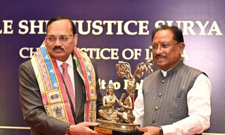 मुख्यमंत्री विष्णुदेव साय ने भारत के मुख्य न्यायाधीश न्यायमूर्ति सूर्यकांत का किया आत्मीय स्वागत