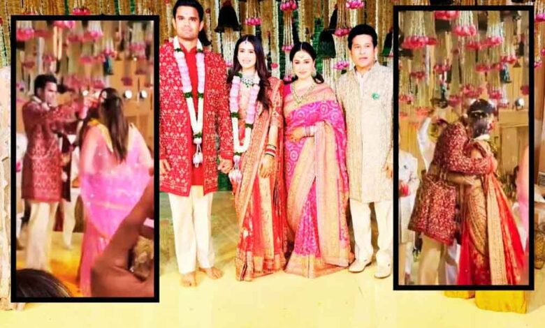 महान क्रिकेटर सचिन तेंदुलकर के बेटे अर्जुन तेंदुलकर गुरुवार (5 मार्च 2026) को मुंबई में सानिया चंडोक के साथ विवाह के बंधन में बंधने वाले हैं। शादी समारोह में खेल, राजनीति और बॉलीवुड जगत की बड़ी हस्तियों ने शिरकत की। पिछले साल अर्जुन तेंदुलकर की अगस्त 2025 में सानिया के साथ निजी समारोह में सगाई की थी। शादी की तैयारियां पिछले कुछ दिनों से जोर-शोर से चल रही थीं। 3 मार्च को मुंबई में मेहंदी और संगीत समारोह आयोजित किया गया, जहां पूर्व क्रिकेटर युवराज सिंह अपनी पत्नी हेजल कीच के साथ, हरभजन सिंह-गीता बसरा, इरफान पठान-सफा बेग और अन्य दिग्गज पहुंचे थे।