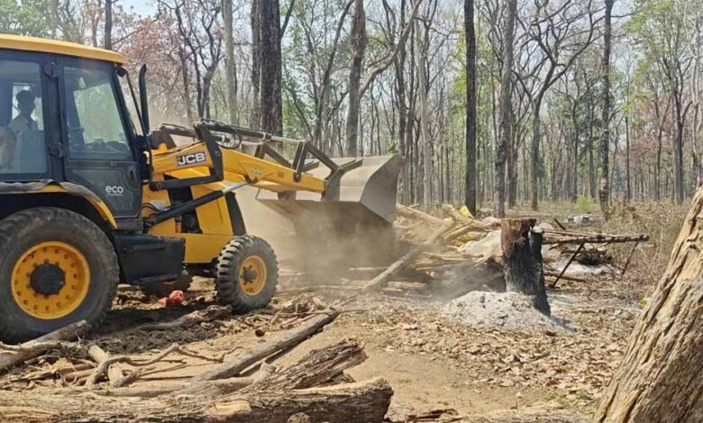 धमतरी जंगल में बड़ा एक्शन: अवैध कब्जों पर चला बुलडोजर, प्रशासन सख्त