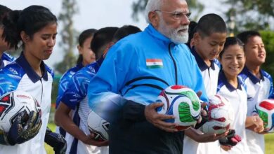 पीएम मोदी ने फुटबॉल मैच में गोल के बाद खिलाड़ियों के साथ मनाया जश्न, देखिए तस्वीरें