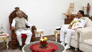 राज्यपाल पटेल से एडमिरल दिनेश कुमार त्रिपाठी ने की सौजन्य भेंट